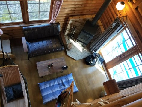 ①ログハウス&薪ストーブ&ハンモックのリラックス空間