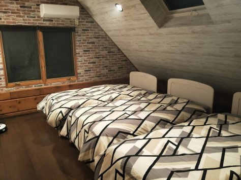 寝室はエアコンがありますので、熱くて寝苦しい夜も安心です。