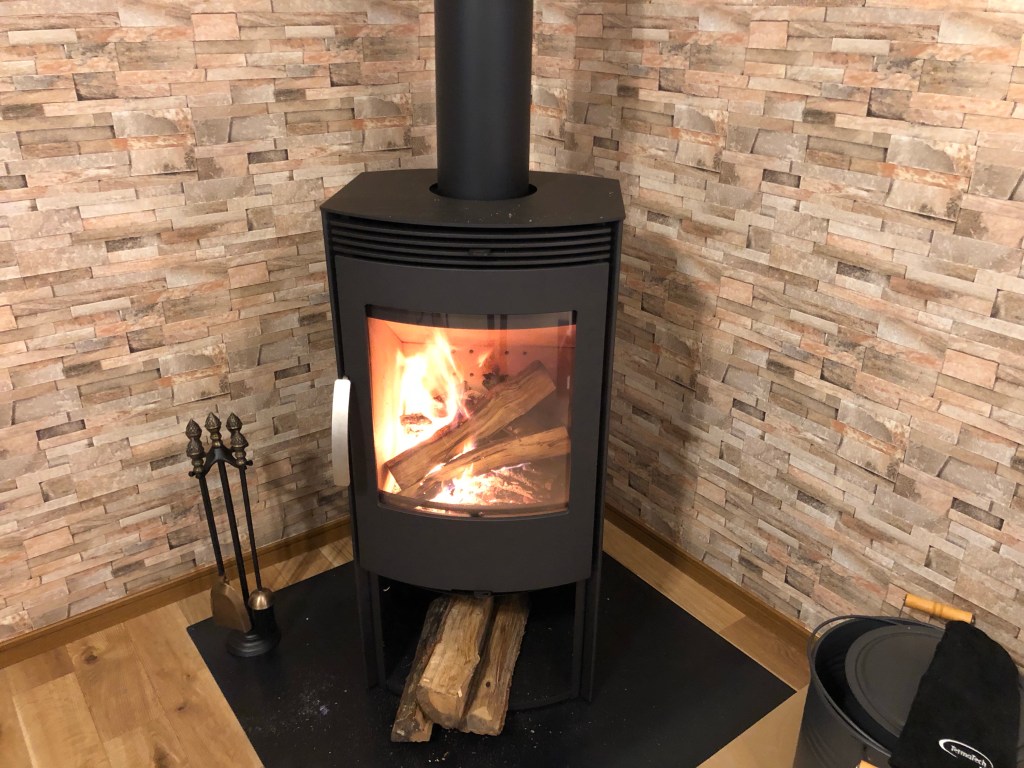 薪ストーブの火だけで充分暖まります。