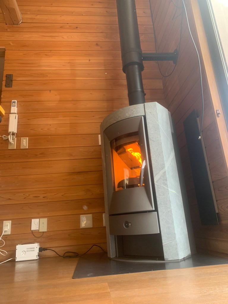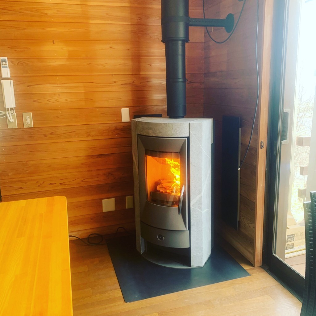 僕の別荘民泊ではお約束の薪ストーブももちろんあります!